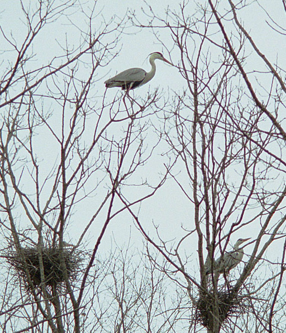 サギの親鳥とひな