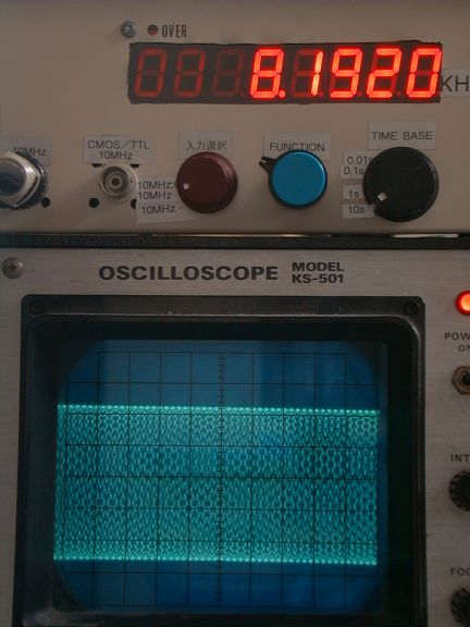 波形はこんなふうになりました。周波数カウンタの数値の単位は 0.1[Hz] です。