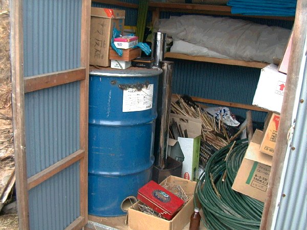 こっそり保管庫の中 これで炭を作るのかな ? |
