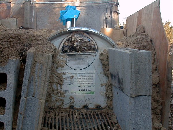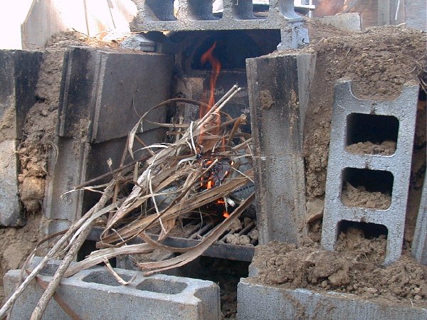正面の穴から熱風を釜に入れます