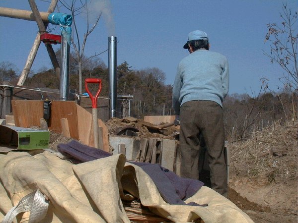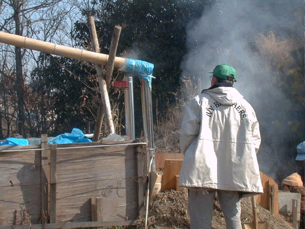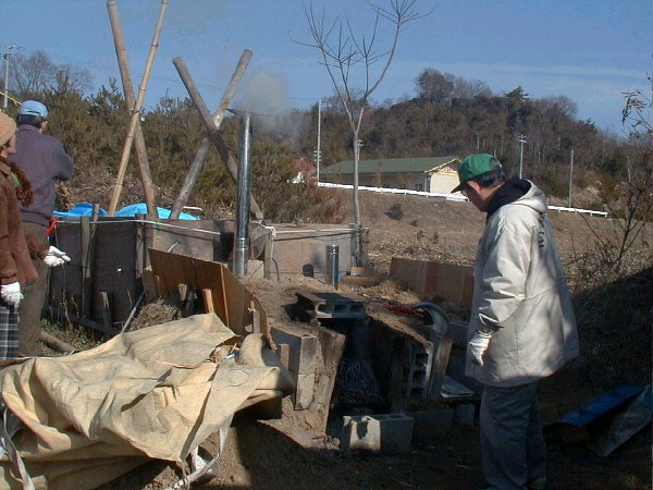 ケナフ炭焼き風景